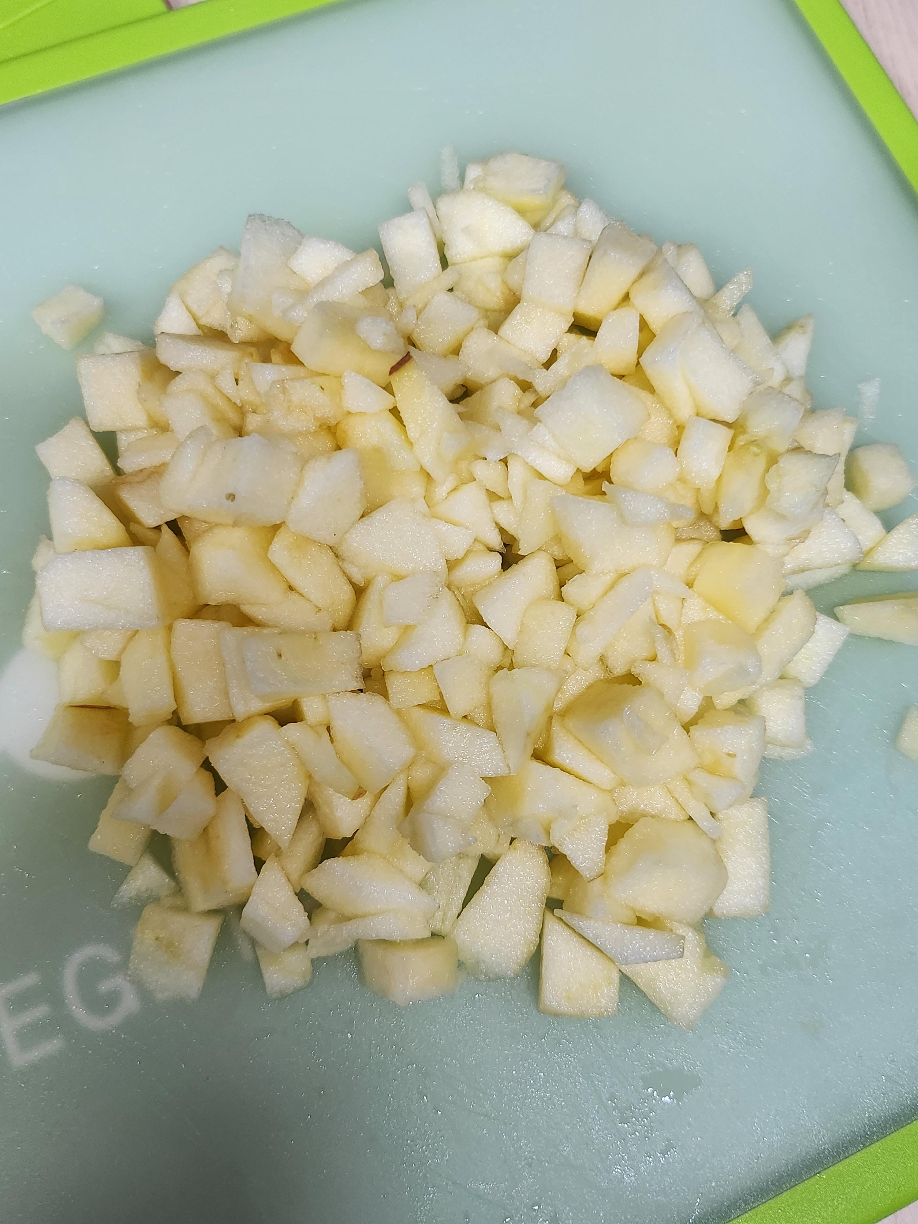 3. 사과를 잘게 잘라줍니다. 작게 만드실 거면 사진보다 더 잘게 잘라주세요!