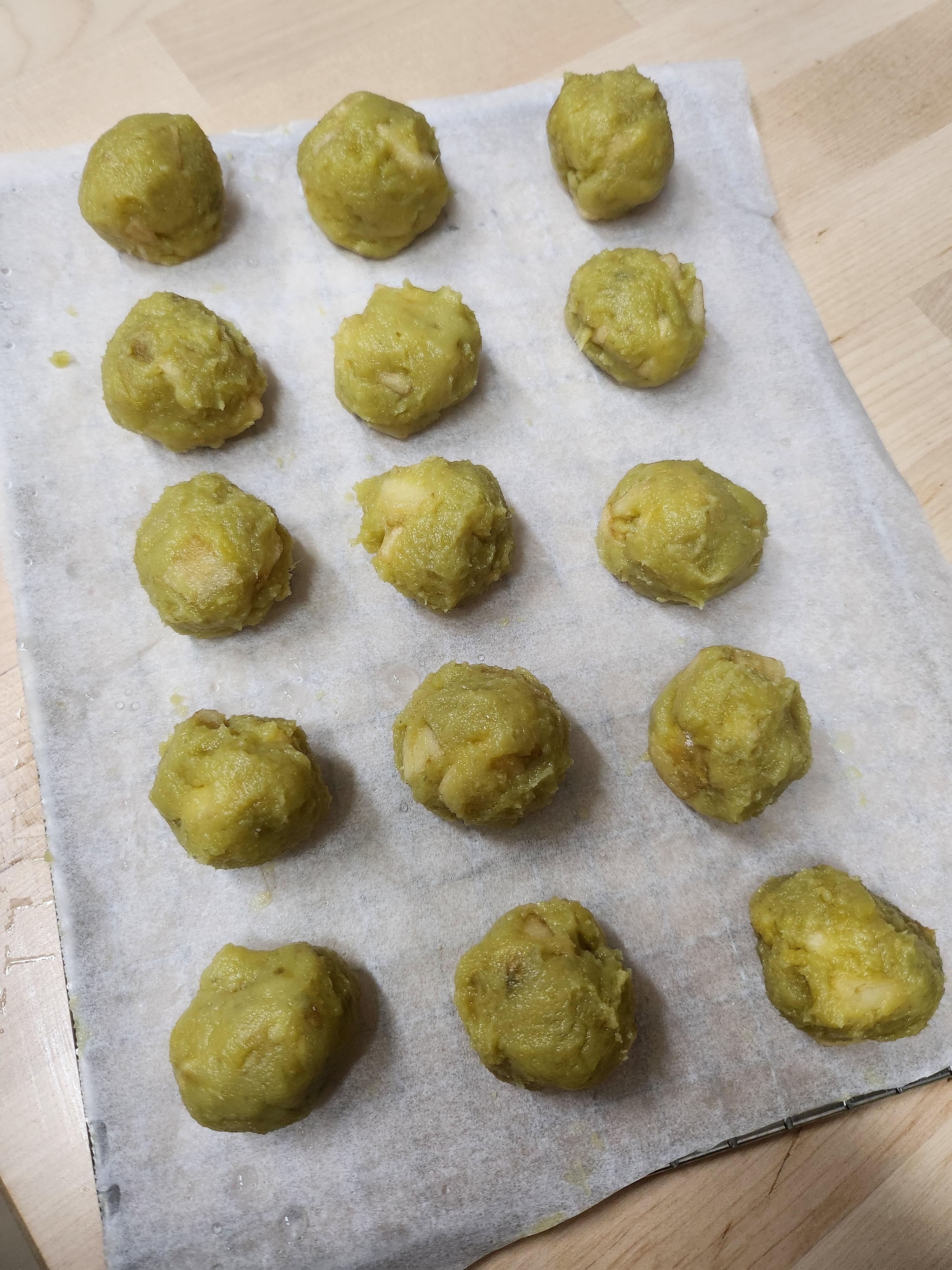 5. 동그랗게 빚어 모양을 만들어줍니다. 개당 10g 정도가 딱 한 입 크기예요! 아기 강아지는 더 작게 만들어주세요.