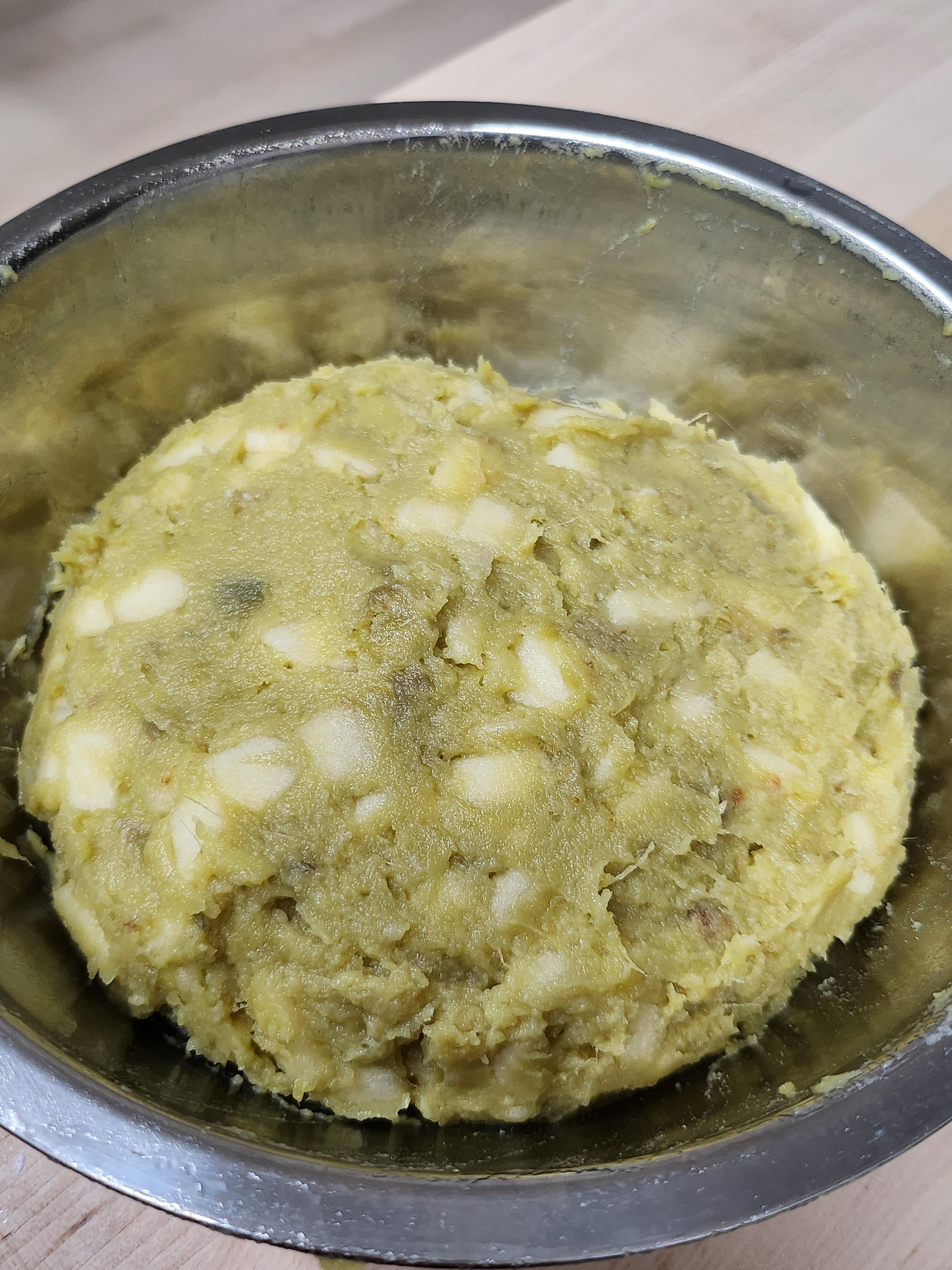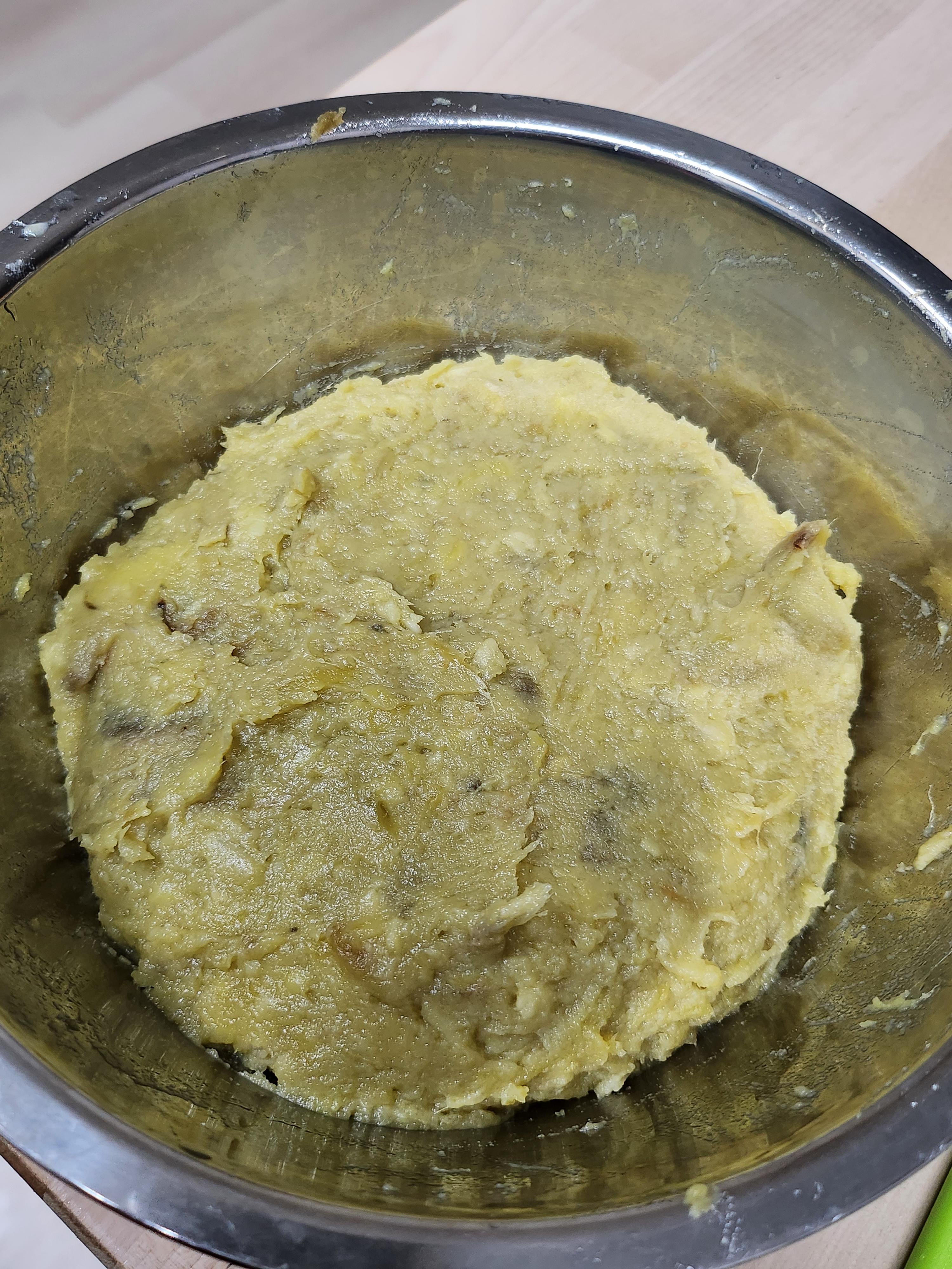 1. 삶은 고구마를 으깨줍니다.