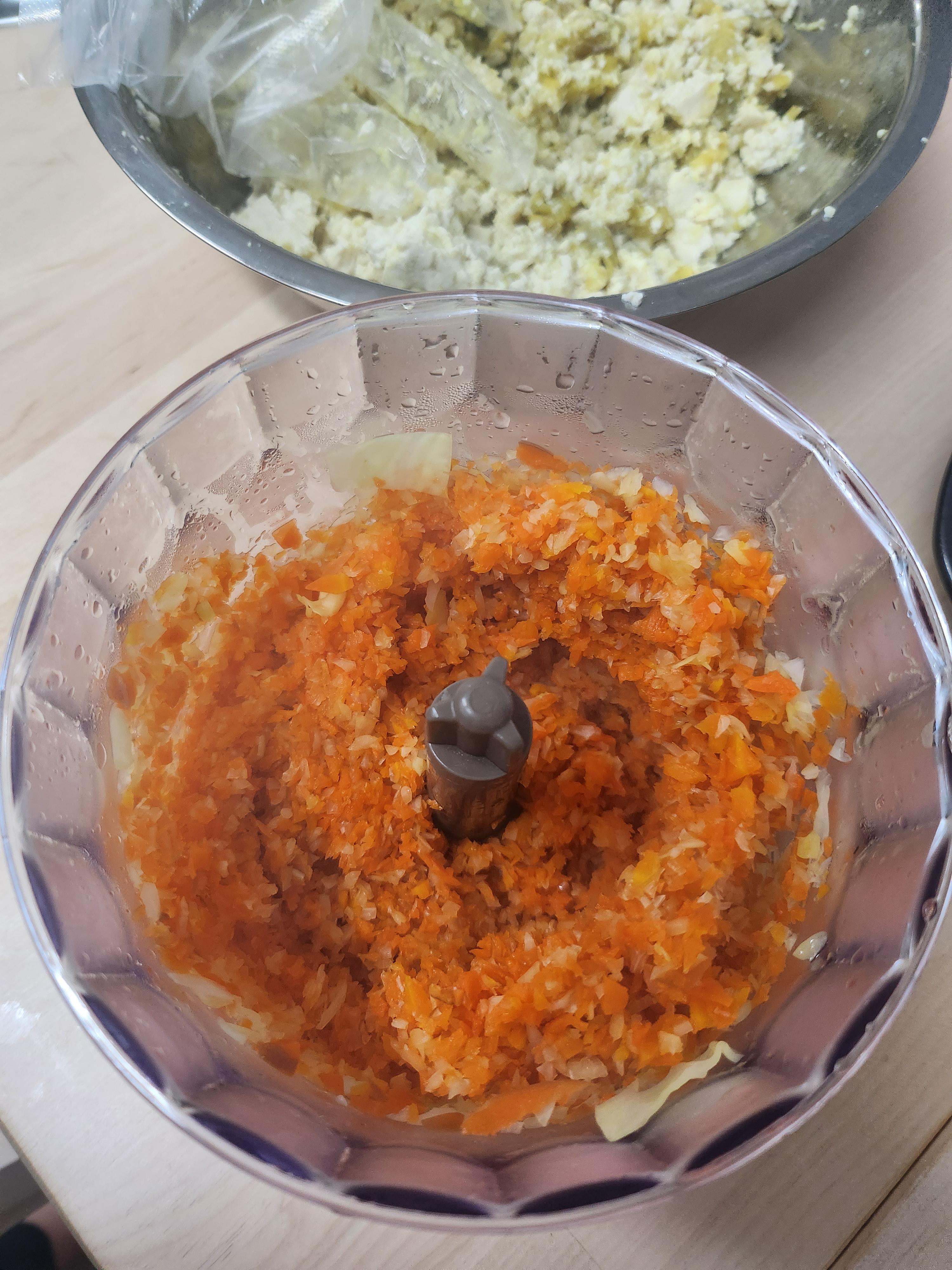 5. 당근과 양배추도 끓는 물에 1분 정도 데친 후 믹서기에 살짝 씹히는 정도로 갈아줍니다.