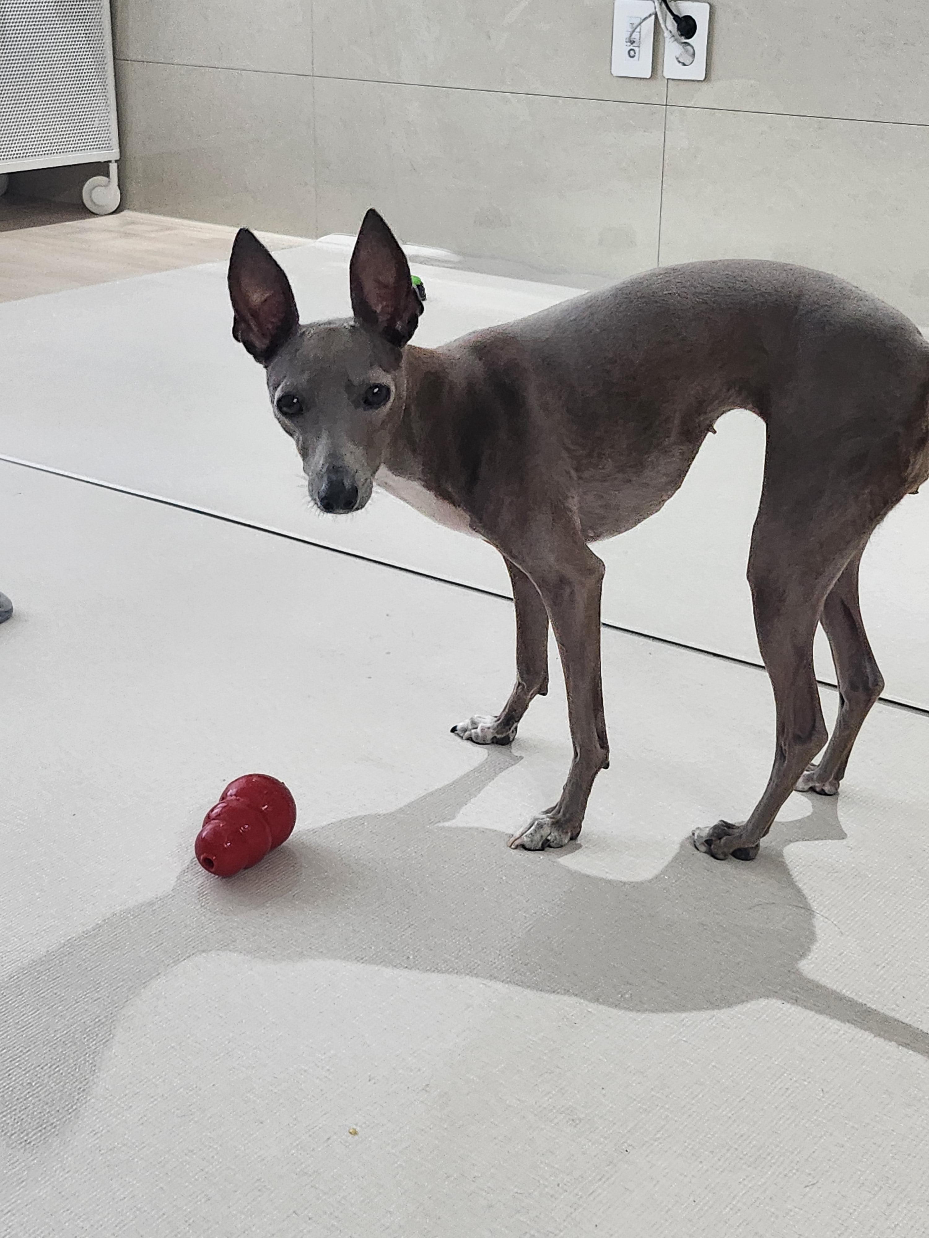 먹고 싶다고 쳐다보는 엔비를 위해 콩토이에 넣어서 줘봤어요!