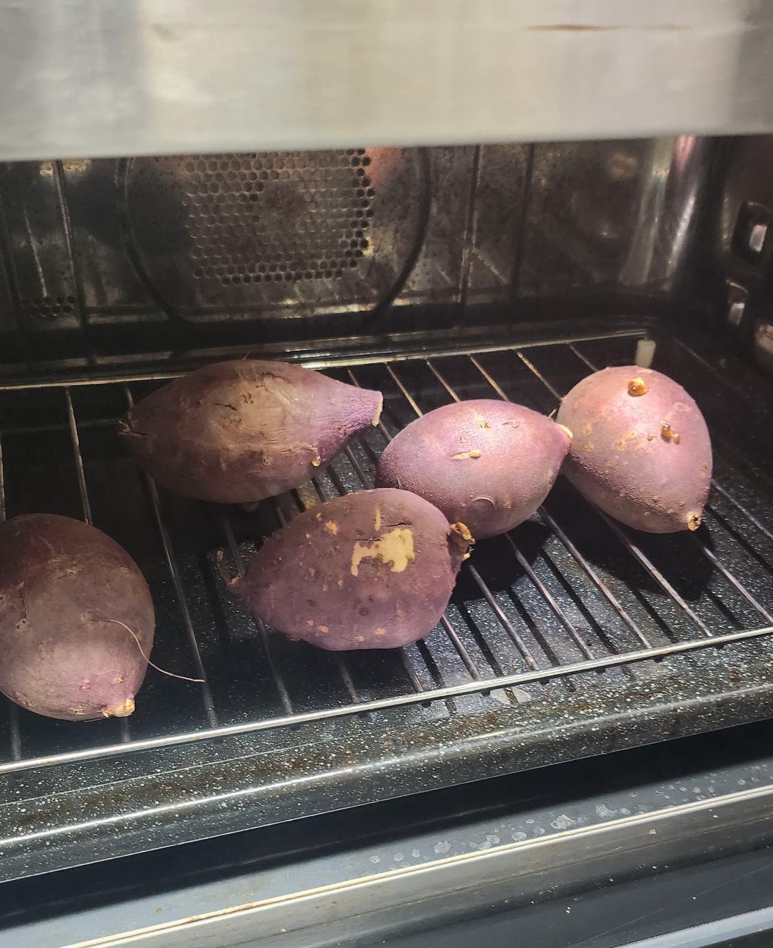 3. 고구마가 집에 많아서 고구마도 넣으려고 오븐에 구웠어요. (생략가능)