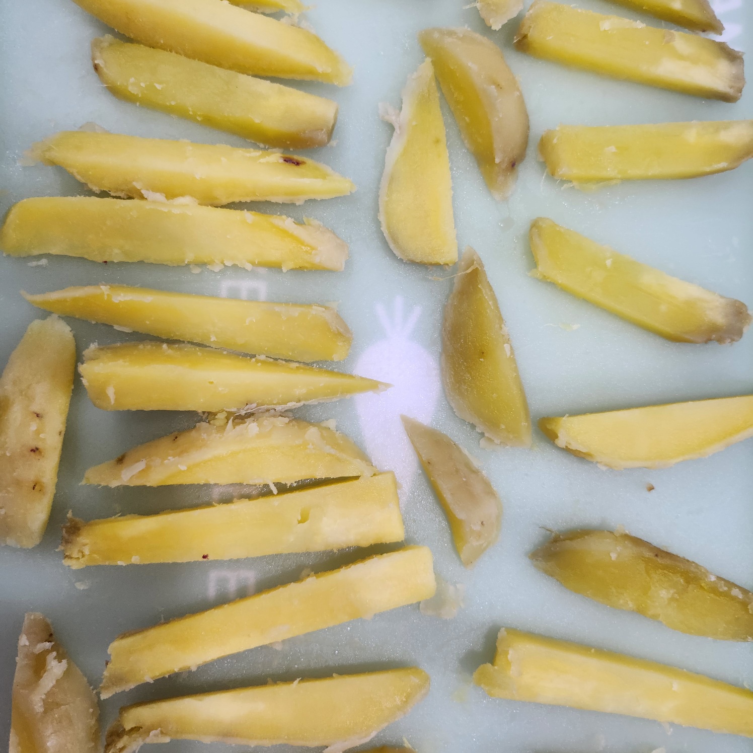 4. 고구마가 익으면 닭가슴살을 말 수 있도록 길쭉하게 썰어줍니다.