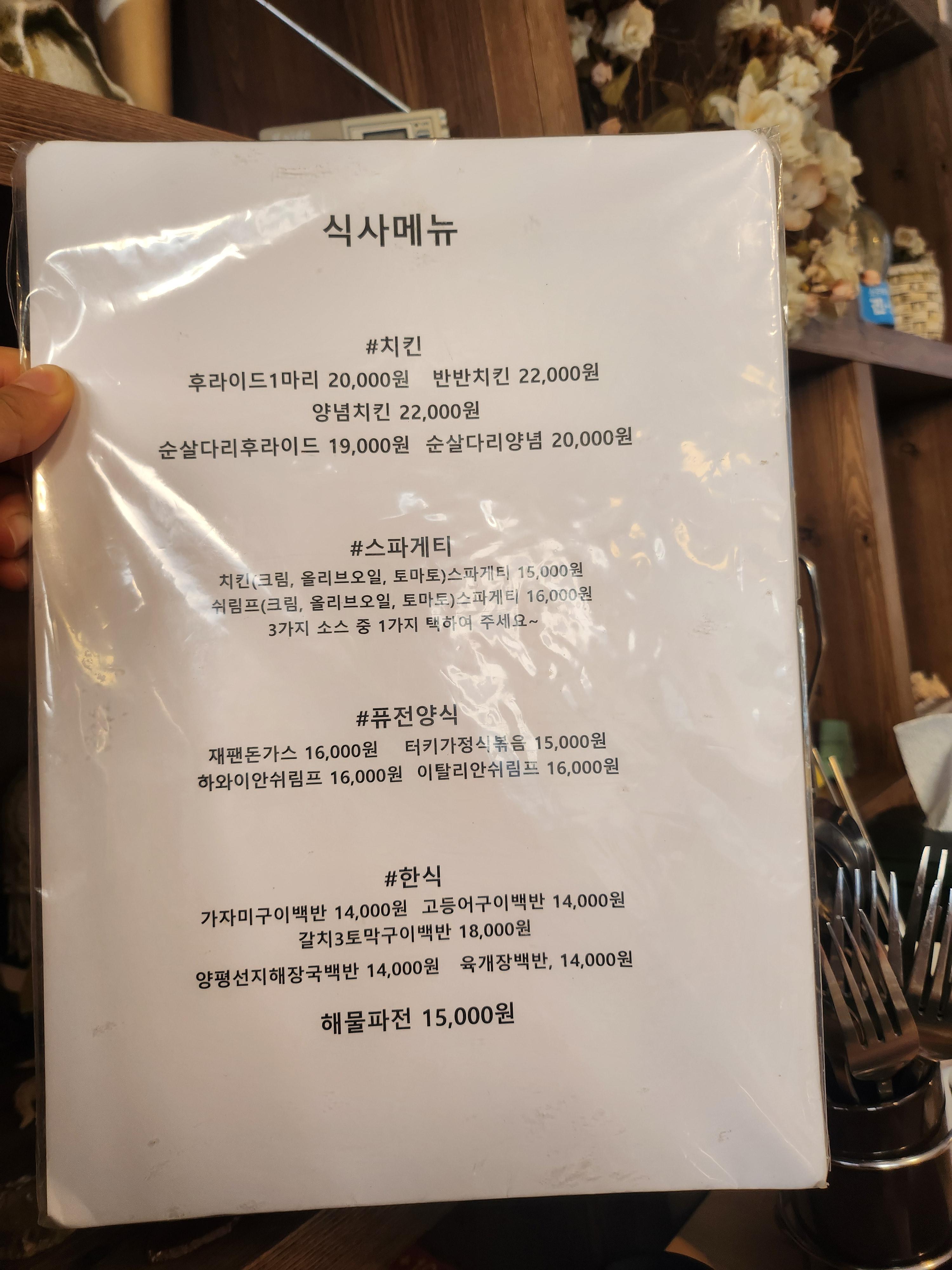 메뉴는 치킨부터 양식, 한식까지 특이하고 다양해요.