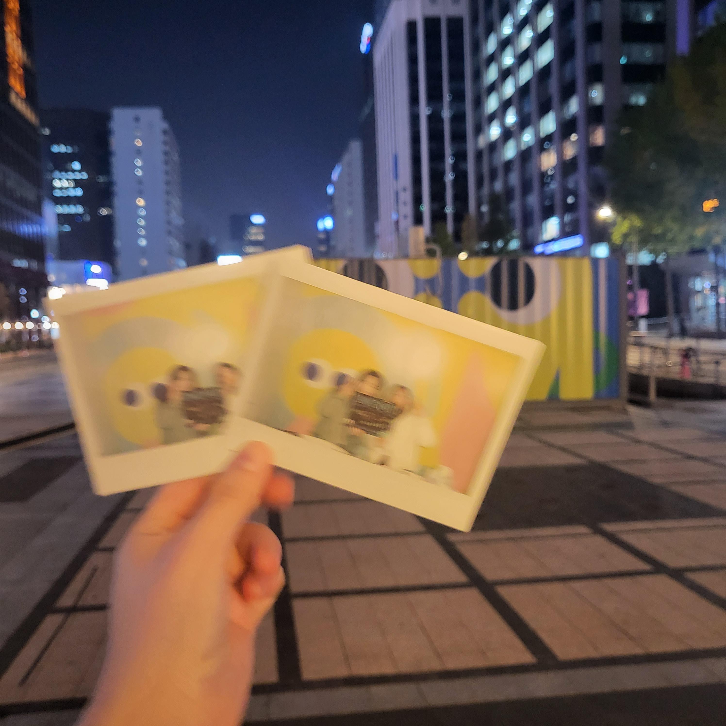 설문조사가 끝나면 귀여운 네임텍과 마그넷들, 엽서도 주시고 기념 폴라로이드 사진까지 찍어주신다.
