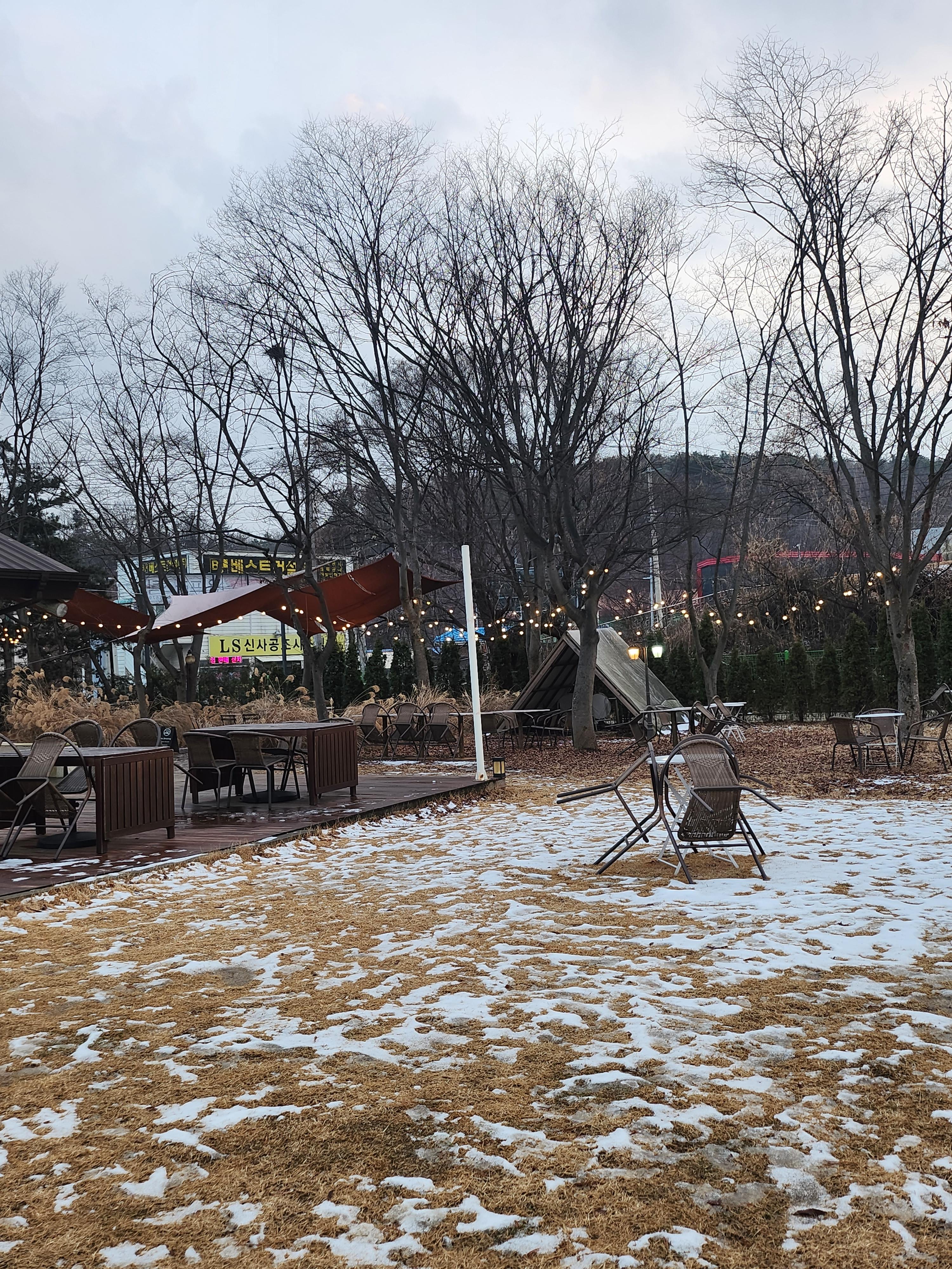 저는 1월 초에 방문했는데 눈 때문에 질어진 땅과 추운 날씨 덕에 밖에서 못 먹었어요.