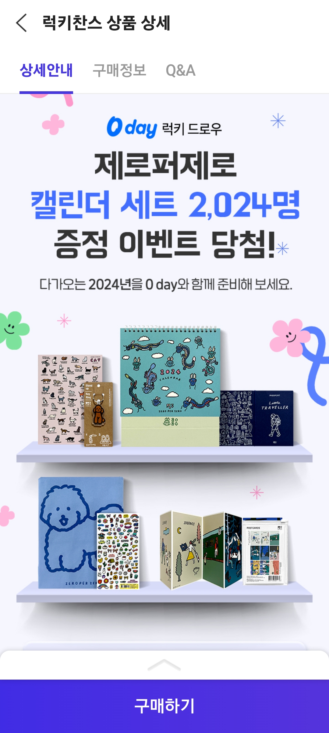 제로퍼제로라는 브랜드에서 만든 2024년 달력으로 2024명 당첨되는 건데 그 안에 제가 포함되어 있다니 새해부터 느낌이 좋아요