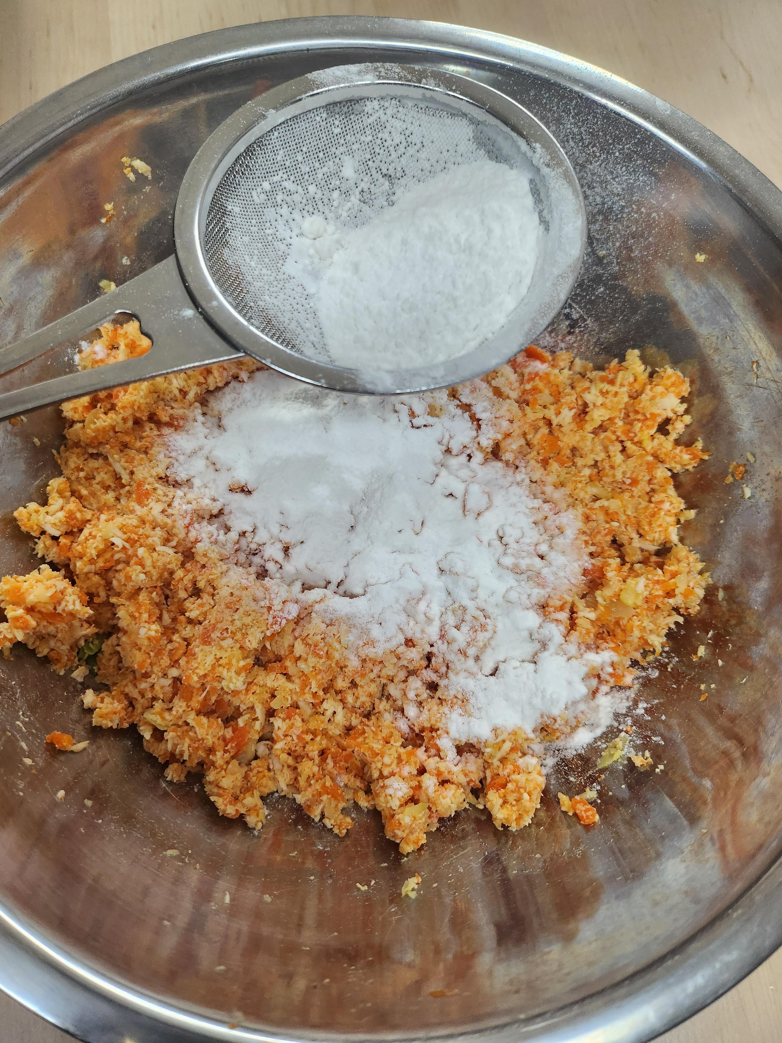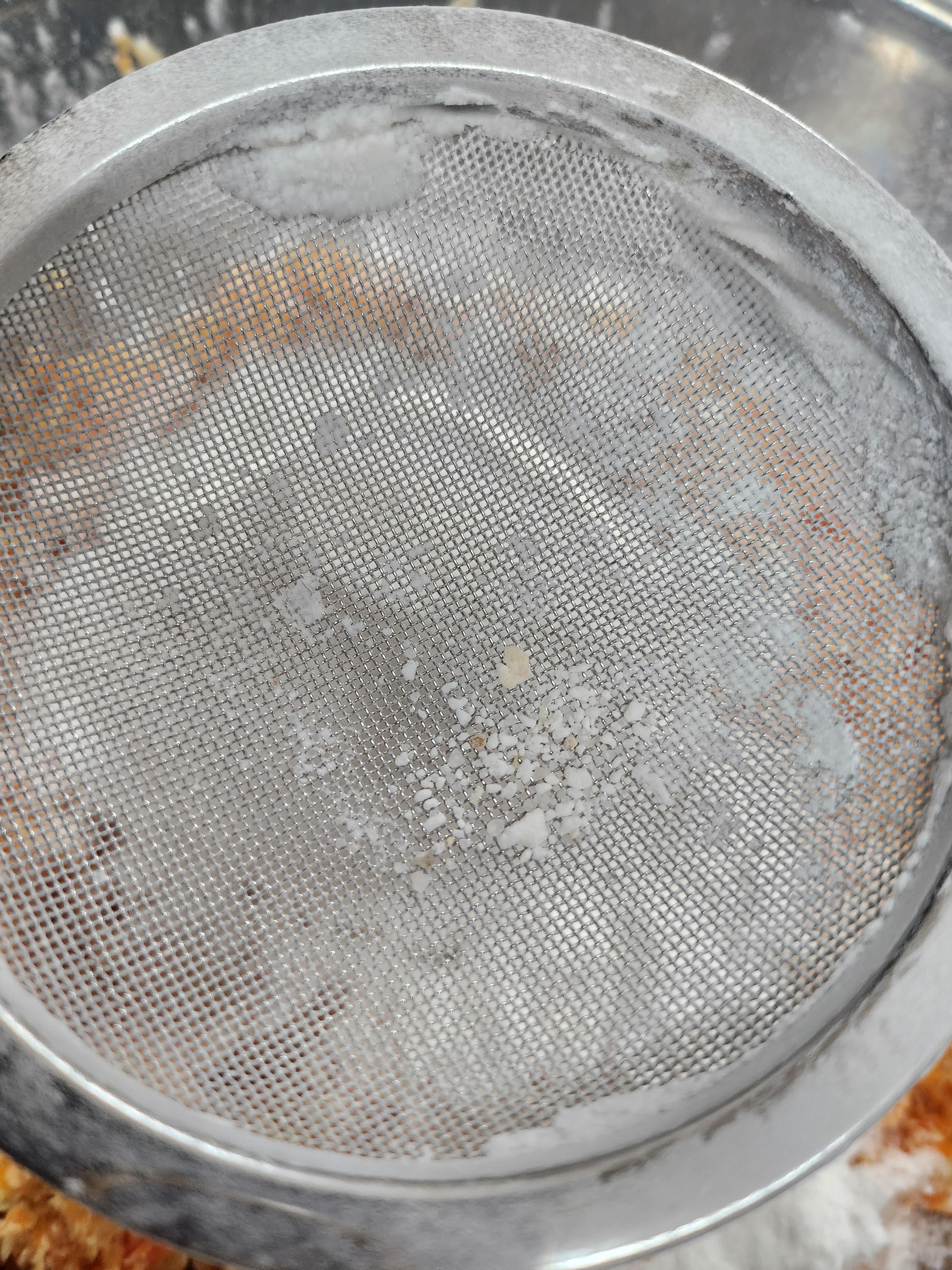 체치고 남은 덩어리들이에요 가루류는 그냥 넣는 것 보다 체쳐서 넣는게 이물질도 제거 되고 잘 섞이며 식감이 좋아져요!