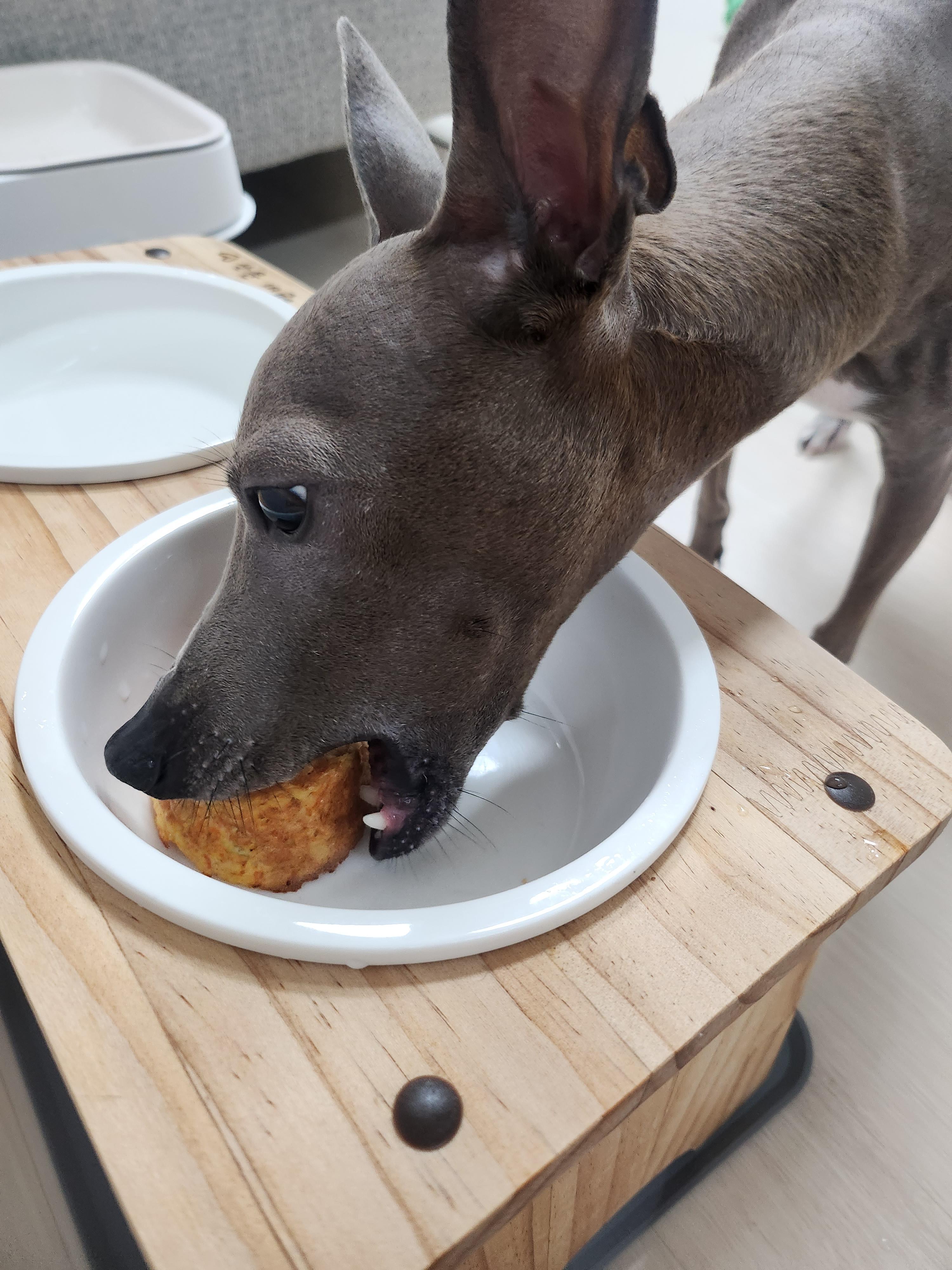 엔비가 좋아하는 재료만 있어서 그런지 강아지 케이크를 맛있게 잘 먹었어요. 다음엔 아이싱까지 해서 더 예쁘고 맛있게 만들어줄게~